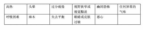 注意:穿著(zhù)防化服時(shí),如果出現以下描述癥狀,請立即脫下防化服: